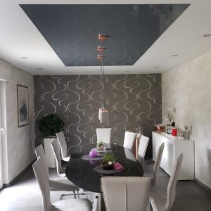 Wohnhaus Ein rundum neu gestaltetes Wohnhaus. In fünf verschiedenen Räumen sind neue Decken entstanden, die in Kombination mit der Beleuchtung für ein offenes und neues Raumklima sorgen. WohnzimmerVerschiedene Eindrücke von Wohnzimmern in und um Aachen. BadezimmerEine Spanndecke mit für Nassräume geeigneter Beleuchtung verwandelt ihr Badezimmer in eine wahre Wellnessoase. GarageIn dieser Garage haben wir eine schwarze Hochglanzdecke inkl. Beleuchtung auf insgesamt 78 m² errichtet. KücheEine Spanndecke in der Küche nimmt keine Gerüche auf und lässt sich kinderleicht reinigen. EsszimmerEine weiße Hochglanzdecke verhilft diesem Esszimmer zu mehr Weite und einem einzigartigen Lichtdesign.